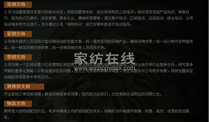 以下這兩張圖是從希美家紡官網(wǎng)上截圖下來的,是希美家紡對一些加盟問題的解答。