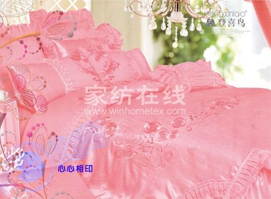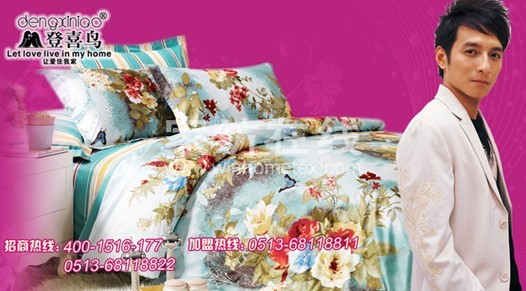 登喜鳥的產(chǎn)品風(fēng)格以簡約、時(shí)尚為主。產(chǎn)品主要包括五大塊:婚慶華爾茲系列、套件系列、兒童系列、被芯系列、枕芯系列。