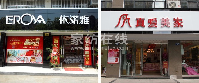從他們的店鋪圖來看,依諾雅的招牌比較優(yōu)雅,而真愛美家則相對簡潔溫馨,兩只鳥的造型也容易讓人聯(lián)想到夫妻同心構(gòu)建美好家。