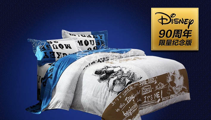 迪士尼羅萊出品 全純棉貢緞卡通兒童三/四件套件 90周年限量紀(jì)念版 月銷量:840
