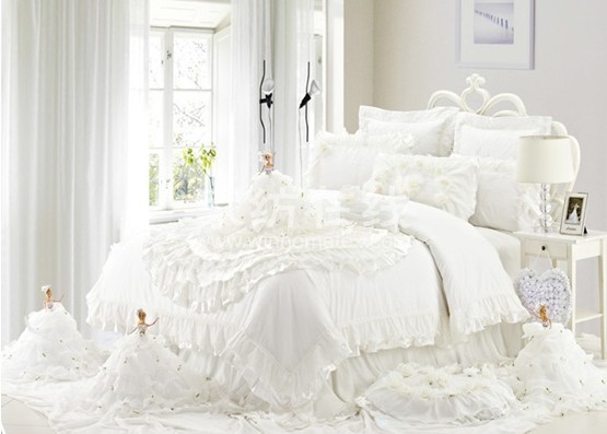 傳統(tǒng)的婚慶色彩以大紅色為主,紅色系的家紡產品總是訴說著熱情與喜悅的感知?墒请S著多國文化的融合,設計的不斷創(chuàng)新,人們的選擇不再單一。白色系的婚慶床品更帶有西式婚禮的感覺,猶如婚紗般唯美而又夢幻的感覺,更得西式文化愛好者的喜歡。