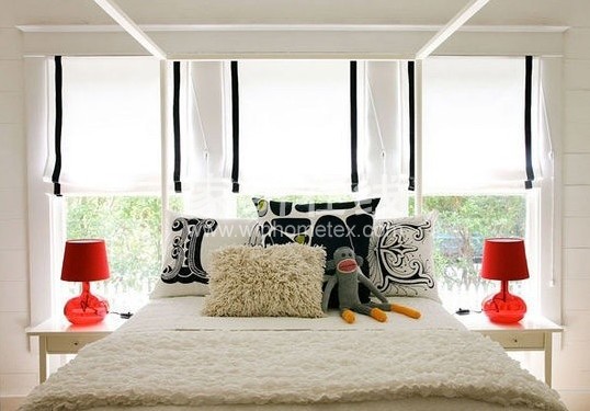 白色仿佛具有魔法般的能量,不讓浮躁擾亂你的思緒。簡單的白色會多少會產(chǎn)生單調(diào)感,所以采用了色彩沖突的黑色抱枕,給人安寧的感覺,即使屋外在燥熱,也能沉靜心緒。白色布藝為主的床,成為房間的核心,散發(fā)出優(yōu)雅的氣質(zhì)。