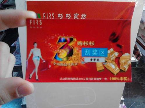 杉杉家紡3周年店慶活動正在全國火熱進行中。昨日,云南石林的杉杉家紡專賣店現(xiàn)場就十分火爆。超低的價格以及100%的中獎率吸引了大批顧客。