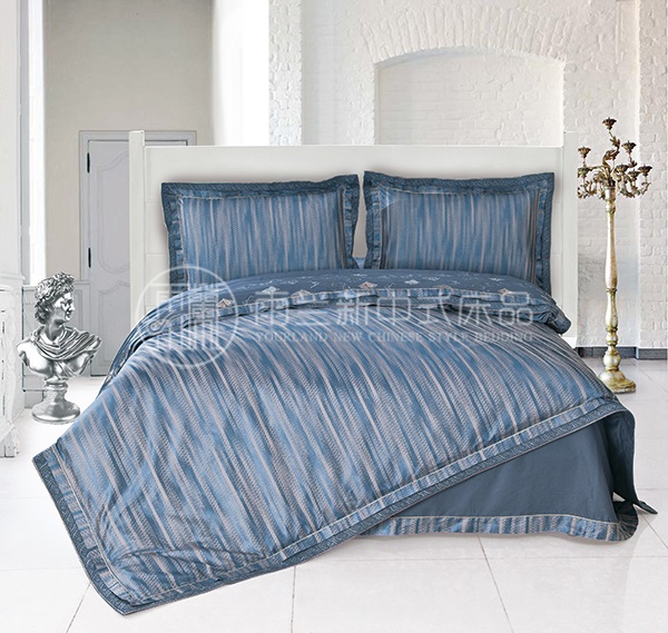 雨蘭時尚生活系列 “似水流年” 床品,采用的色織提花工藝,具有真絲般的光澤感和爽滑感,柔軟親膚,吸濕透氣的特性,且染料滲透性強,色牢度好,洗滌時更不容易褪色,縮水率小,歷久如新。提花圖案選用傳統(tǒng)的水波花紋設(shè)計,花紋凹凸有致,立體感強,寓意著綿延不絕,富貴長流,細致流暢的剪裁,處處體現(xiàn)了低調(diào)的簡約之美。