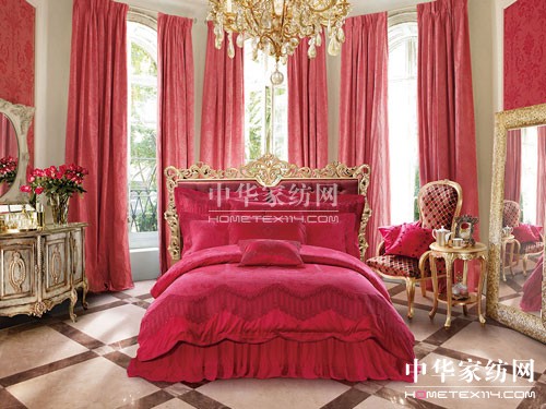 再現(xiàn)了花園婚禮宣誓的神圣時(shí)刻。造型優(yōu)美的婚禮宣誓臺、象征愛情和幸福的噴泉,在優(yōu)雅而柔美的粉色床品上呈現(xiàn);大片手工訂制珍珠和蕾絲組成的珠寶圖型,共同組成了夢幻婚禮的完美見證。繁茂的花草刺繡,象征著家族的昌盛興隆,最令人愛不釋手的是在抱枕上用英文書寫的“愛的源泉”中美麗的蝴蝶破繭新生,充滿柔情而經(jīng)典的組合充滿了愛的喜悅。