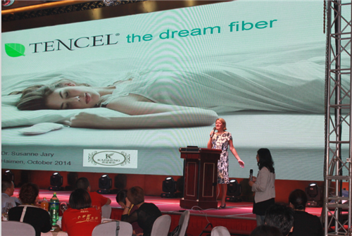 凱盛歐洲設(shè)計(jì)團(tuán)隊(duì)在會(huì)議當(dāng)天發(fā)來(lái)祝賀,預(yù)祝會(huì)議圓滿成功,祝凱盛家紡2015新品暢銷(xiāo)。凱盛天絲原材料供應(yīng)商奧地利蘭精公司蘇雅瑞女士出席了此次會(huì)議,全程英文同聲翻譯介紹TENCEL (天絲)原料,讓凱盛加盟商朋友們更深入更完整的了解到天絲面料,獲得陣陣好評(píng)。凱盛家紡優(yōu)秀加盟伙伴徐素香分享了如何做好單品成功銷(xiāo)售以及2015年的發(fā)展規(guī)劃,給出了很多成功經(jīng)驗(yàn)以便和伙伴們一起做好終端銷(xiāo)售,服務(wù)好消費(fèi)者。凱盛家紡董事長(zhǎng)徐瑞鵬則分享了凱盛天絲產(chǎn)品這幾年在研發(fā)、推廣上的創(chuàng)新。2015年凱盛將聚焦天絲產(chǎn)品,真正滿足用戶的需求,解決用戶的需求,建立良好的口碑。