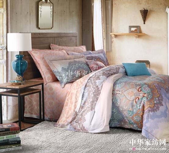 以佩茲利紋為主的圖案,時尚優(yōu)美,又大氣奢華,視覺感受色彩豐富,高貴。精致的佩茲利花型曼舞在柔軟的面料上,舞出滿室的溫馨浪漫。