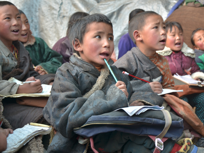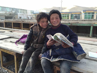 下午在去日扎小學(xué)的路上,發(fā)現(xiàn)的另一所學(xué)校更讓人心酸。這所小學(xué)不止是沒(méi)有名字,這是一個(gè)寫著“牲畜暖棚”的建筑物。沒(méi)有書桌,沒(méi)有暖源,沒(méi)有教具。有的,只是一塊簡(jiǎn)易黑板,牲畜糞便的氣味,塑料遮陽(yáng)篷的自然光和一群天真無(wú)邪的孩子……所有的語(yǔ)言和心里準(zhǔn)備都是蒼白無(wú)力的,簡(jiǎn)直就不知道該如何去面對(duì)可愛(ài)的孩子。大大小小17個(gè)孩子,一個(gè)年邁的老師在簡(jiǎn)易黑板前帶著孩子們讀藏語(yǔ)音節(jié),孩子們趴在自己腿上寫作業(yè)....