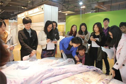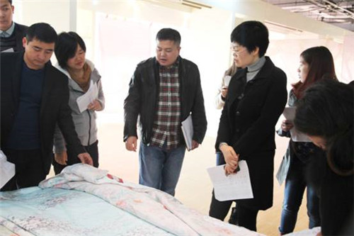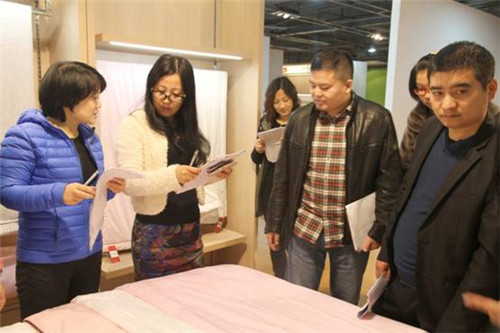 裝修一新的龐大展廳內(nèi),設(shè)計(jì)師細(xì)致講解,評(píng)審員們細(xì)心地觀察樣品,認(rèn)真評(píng)審打分,并與設(shè)計(jì)師熱情交流,就產(chǎn)品提出寶貴意見,力圖滿足多樣化的市場(chǎng)需求,為消費(fèi)者提供最舒適滿意的床品。