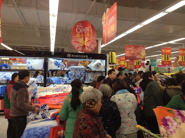 12月26日,雨蘭江西景德鎮(zhèn)專廳在當(dāng)?shù)厥忻竦臒崆衅谂蜗拢缙谂e行了盛大的開(kāi)業(yè)儀式,正式入駐景德鎮(zhèn)華潤(rùn)萬(wàn)家商場(chǎng),一陣陣禮炮聲,洋溢著歡樂(lè)的圣誕氛圍。開(kāi)業(yè)當(dāng)天,刺骨的寒風(fēng)仍然沒(méi)能抵擋住顧客的熱情,慕名而來(lái)的顧客擠滿了整個(gè)專廳,對(duì)各系列的具有中國(guó)文化元素的雨蘭床品目不暇接,特別是“青花”床品,體現(xiàn)了中國(guó)民族的傳統(tǒng)特色,彰顯出濃厚的東方神韻!景德鎮(zhèn)專廳的開(kāi)業(yè),將瓷都文化與青花床品融入生活,讓當(dāng)?shù)厝嗣窀惺艿搅擞晏m新中式床品的青花魅力。