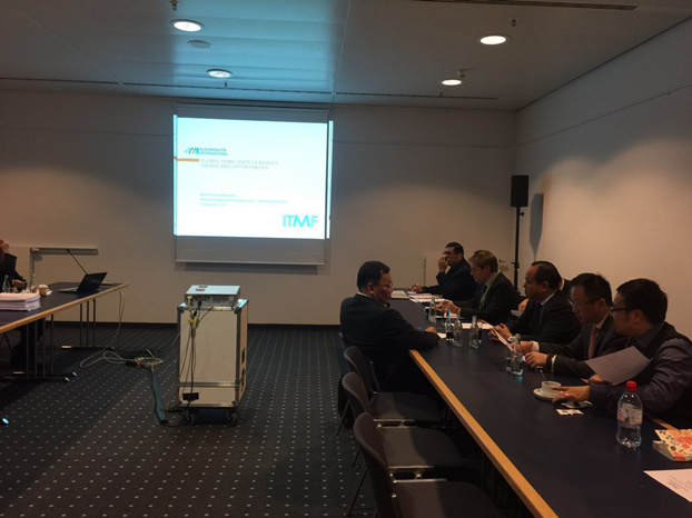 1月15日,國(guó)際紡聯(lián)家紡制造商專(zhuān)委會(huì)年會(huì)在法蘭克福家紡展期間召開(kāi)。楊兆華會(huì)長(zhǎng)率中國(guó)家紡企業(yè)代表參加了年會(huì)。參加會(huì)議的中國(guó)企業(yè)代表有:廣州源志誠(chéng)家紡董事長(zhǎng)鄧源津、南通紫羅蘭家紡董事長(zhǎng)陳永兵、南通金太陽(yáng)家紡總經(jīng)理袁紅星、浙江金佰利布藝董事長(zhǎng)魯金洲、浙江金蟬家紡董事長(zhǎng)楊衛(wèi)等。