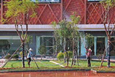 (陳莉莉 攝)工人們正在綠化