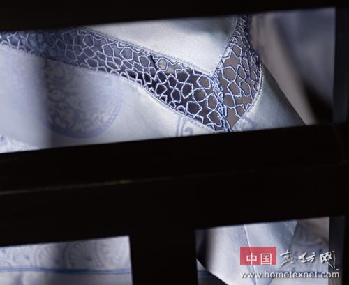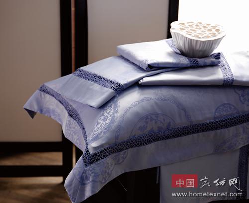 本季博洋家紡經(jīng)典主推——青出于藍(lán),花型上以新古典主義手法表現(xiàn)青花瓷盤經(jīng)典圖案,配以枝蔓底紋,精致而巧妙。輕觸床品,依然能感受到這一別樣青花透露出的韻味。或淡如碧空,或深如瀚海,雖同為藍(lán)色,卻在與全棉緞紋的質(zhì)感接觸之時(shí)幻化出另一種織物的個(gè)性。