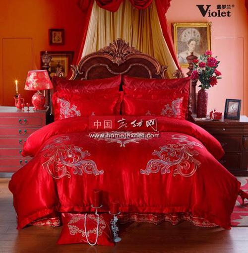 在這個(gè)喜慶的時(shí)刻,婚禮就是一場盛筵。被套正中歐式卷草與花卉的組合,形似聚寶盆,象征著愛情婚姻富貴滿滿,就是一生的寶物。被頭的珠簾設(shè)計(jì),令人立即感受到了喜氣洋洋的氛圍,繡花圖案寓意果實(shí)累累。整款套件時(shí)尚大氣,溫馨浪漫。