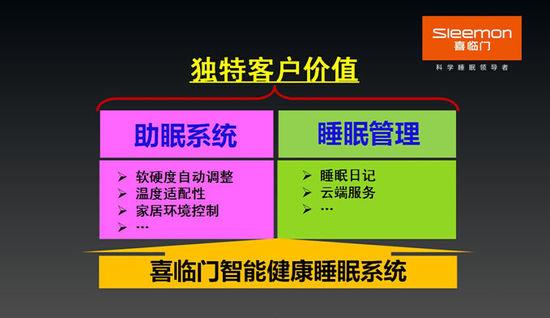 目前,針對睡眠健康的智能產品市場上并不罕見,但無論是需要APP輔助支持的睡眠監(jiān)測手環(huán)還是僅有少量智能功能但卻號稱智能床墊的“入門級產品”,都僅能解決部分不精準的睡眠監(jiān)測功能,無法提供有效的睡眠改善。喜臨門顛覆了單一床墊思維,而是把研究開發(fā)拓展成一個完整的建康睡眠系統(tǒng),通過采用軟硬一體化的睡眠體檢、云端日記、助眠系統(tǒng)等多個功能模塊對睡眠進行全程建康呵護。