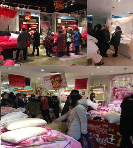 昨日,記者在文化路羅萊家紡和金仕利國(guó)際家居館看到,門外張貼了醒目的清倉(cāng)甩賣招牌,“不計(jì)成本、給錢就賣、一件不留”等招牌,吸引了很多市民前往選購(gòu)商品。家居館內(nèi)人潮涌動(dòng),很多市民都在挑選自己心儀的商品, 家具、家紡、床品、窗簾,甚至是形象展示的飾品都成了瘋狂搶購(gòu)的對(duì)象。準(zhǔn)備搬新家的王女士開心地選購(gòu)家具、窗簾、床上用品,她說真幸運(yùn),這次清倉(cāng)處理可以一站購(gòu)齊全部需要的商品,面對(duì)打了對(duì)折的商品,直呼“購(gòu)得太痛快了,省心又省錢”。記者在羅萊家紡看到,婚慶床品更加熱鬧,因春節(jié)前恰逢結(jié)婚高潮,很多準(zhǔn)新人都來這里選新婚床品。羅萊的婚床床品設(shè)計(jì)完美,寓意吉祥,一直是新人和家長(zhǎng)喜愛的品牌。結(jié)婚、陪嫁用羅萊有品位、有面子。而羅萊的家居服、圍巾、拖鞋等小物品很多已被搶購(gòu)一空。