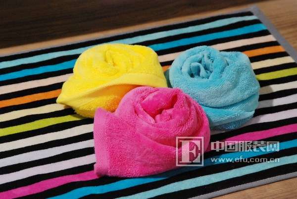 依詩家展出的展品包含毛巾系列產(chǎn)品、高檔床上用品、布藝裝