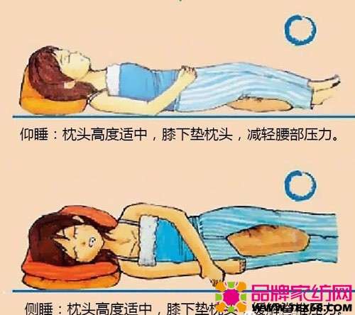 平睡(仰姿)時,枕頭要剛好從整個頭部一直墊到脖子,不能墊到肩膀,更不能只墊到后腦一半之處,膝下最好安置一個小枕頭;側(cè)睡時高度要加高一倍,兩膝間也要夾個小枕頭;趴睡最好避免,因?頸椎會承受過大壓力;起床時則要記得先側(cè)姿,手扶著起來,再下床,不要直接仰臥著就坐直起身。