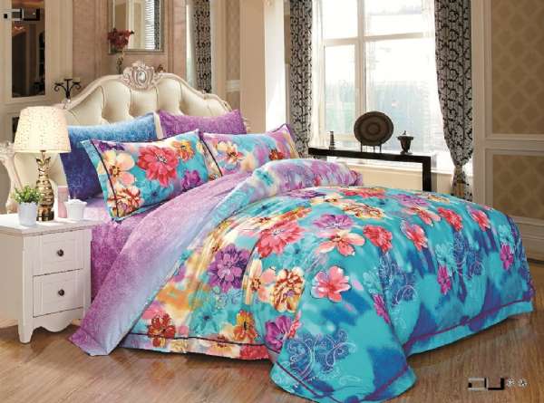 是我們今年主推的跑量產(chǎn)品,花型都是今年最熱門(mén)的花色,四件套選好花色就等于成功了一半……從