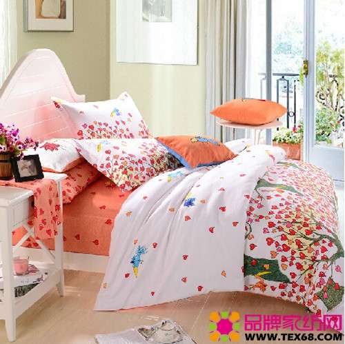 這套床品A版以多彩的“愛情樹”為題材,愛情樹長滿了浪漫的愛心,象征著愛情的果實(shí),愛心隨風(fēng)伴隨,灑滿整幅畫面,充斥著浪漫與溫馨,給人滿滿的幸福感。
