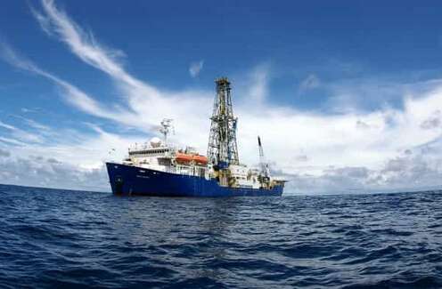 這些安裝工作完成后,船上就可收回“打底孔”的鉆桿,換上專門鉆取巖芯的鉆桿。19日下午,巖芯鉆桿順利進入了鉆孔。科學家將這個鉆孔編號為U1473A。今后一個多月中,“決心”號將一直在這個孔里鉆取巖芯。