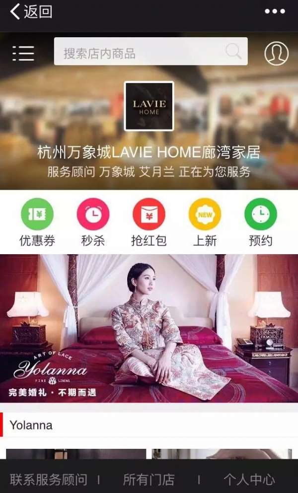 今年1月,廊灣架構(gòu)了微門(mén)店,每一家門(mén)店都有一個(gè)服務(wù)號(hào),功能包括在線導(dǎo)購(gòu)、內(nèi)容推送等。粉絲關(guān)注后成為會(huì)員,可以隨時(shí)隨地瀏覽商品,參與秒殺,咨詢問(wèn)題,在線導(dǎo)購(gòu)就由線下門(mén)店導(dǎo)購(gòu)擔(dān)任。比如某家門(mén)店的用戶想購(gòu)買的一件商品缺貨,導(dǎo)購(gòu)可以立馬從其他門(mén)店調(diào)貨,然后與顧客溝通好送貨時(shí)間并安排上門(mén)安裝。費(fèi)小剛表示,從后臺(tái)看,用戶很接受這種碎片化的溝通方式,售前售中服務(wù)都可以靠實(shí)時(shí)通訊工具完成。
