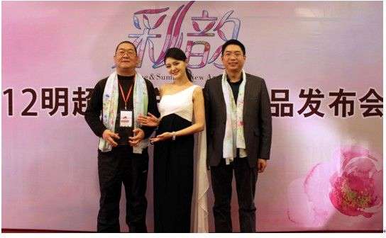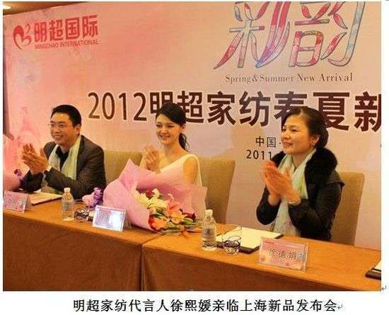 徐熙媛為明超家紡諸位優(yōu)秀經(jīng)銷商頒獎并與其合影