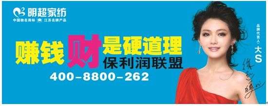 明超家紡在2012春夏產(chǎn)品發(fā)布會上隆重發(fā)表了白皮書,其核心內(nèi)容為“賺錢財是硬道理”,它是明超家紡應(yīng)對市場態(tài)勢創(chuàng)新的經(jīng)營理念,致力于和每一個加盟明超的事業(yè)伙伴本著互助、互信的原則,實行互利雙贏;“保利潤聯(lián)盟”的創(chuàng)新政策,承諾并保證客戶投入明超事業(yè)的每一筆資金都有10%的保底利潤和100%的增值空間。明超家紡始終堅持從市場出發(fā),以消費者為導(dǎo)向,以客戶利益為基礎(chǔ),不斷提高產(chǎn)品品質(zhì),不斷調(diào)整經(jīng)營策略,不斷提升品牌形象,不斷做好服務(wù)支持,根據(jù)行業(yè)的發(fā)展現(xiàn)狀和未來趨勢,全心打造了家紡界中最富競爭力、最具優(yōu)越性的招商加盟體系,讓眾多看好家紡、熱衷家紡經(jīng)營的有志之士找到了事業(yè)的方向,開啟了致富之門。