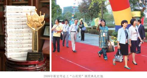 2008年8月,田野鋪錦、果上枝頭的時候,恰值自治縣慶典的前夕,《喀左?東蒙民間故事》蒙漢雙語12卷出版了。2009年10月31日,第九屆中國民間文藝山花獎頒獎典禮上,《喀左?東蒙民間故事》蒙漢雙語12卷榮獲國家級政府最高獎,列本屆民間文學(xué)作品首位。靳宏琴作為獲獎?wù)咧唬ど狭祟C獎典禮的紅地毯。