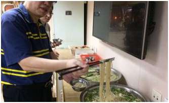 長途奔波后終于抵達(dá),船上的第一頓晚餐都準(zhǔn)備了什么好吃的呢?菜花,小黃魚,煎蛋,面條……哎喲,看起來不錯喲!隔著屏幕,聞到飯香了嗎?