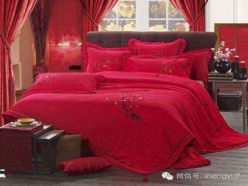“中國紅”婚慶系列――中國紅代表著中國悠久歷史的傳統文化,是中華民族崇尚的顏色,體現著富貴吉祥與喜慶和諧,是熱忱、奮進、團結的民族風格的象征;盛宇家紡,以中國傳統文化元素為主題,用現代獨持的設計理念與手法,結合中國文化和現代時尚的完美,演繹出萬種風情的中國慶系列床品。