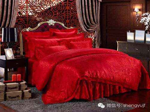 圍墻下,花圃中,開滿了美麗的花朵,她們爬上了枝頭,編織著你要的夢幻嫁衣,純潔無瑕,獨一無二,即將成為新娘的你,洋溢著幸福的微笑,只為等待那一天的到來。此款床品是經典中國紅提花面料,加上精致傳統的繡花紋樣,使得產品大氣又不失優雅,是婚慶的最佳選擇。
