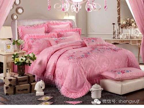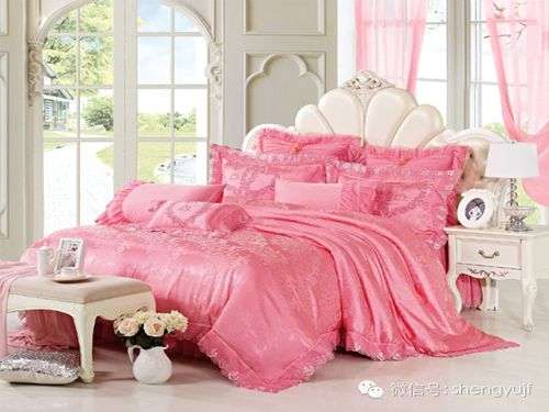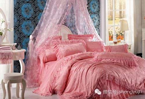 秋風將花瓣吹滿了天空,灑下片片溫情,承載著濃濃的愛意,綻放出愛的火花,有你相伴,讓我們彼此攜手,走過花香雨季,幸福到永久。溫馨的粉色,將婚期的甜蜜展現得淋漓盡致;精致的蕾絲花邊,別出心裁的床裙設計猶如少女翩翩起舞,不僅給產品帶來款式上的提升,更給視覺增添精彩。