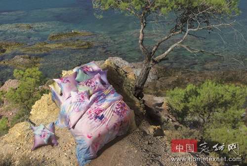 在春夏新品中絢彩系列產(chǎn)品有著其重要的地位,在色彩上會采用中性、柔和、粉嫩色系,結(jié)合國際流行色為主軸,做足女人味,在產(chǎn)品的效果呈現(xiàn)上,如幸福花開、仲夏紫韻、彬芬等所有絢彩系列的產(chǎn)品都是以水彩畫的花卉為呈現(xiàn)方式,令人一見傾心;婚慶系列在延續(xù)中西合璧式婚慶產(chǎn)品打造的前提下,推出了更加符合年輕人口味并且沿用范圍較廣的花卉系時尚婚慶產(chǎn)品,如主推“幸福蜜語”,以花卉滿鋪的形式呈現(xiàn)在面料上,顏色以時尚大紅色和玫紅色作為主打顏色,喜慶浪漫。展現(xiàn)出新一代年輕人對愛情婚姻的獨特表達(dá);奢華系列的真絲產(chǎn)品,突破了以往市場上真絲類產(chǎn)品色系(冷色為主)和紋樣比較單一狀況,2014博洋家紡春夏新品推出了更多暖色調(diào)的大氣而高貴花卉紋樣的真絲產(chǎn)品;另外2014春夏產(chǎn)品更具關(guān)聯(lián)性和延續(xù)性,不僅有一花兩色、一花多款,蘊含視覺和感官的多重體驗;更有套件的花型,延續(xù)呈現(xiàn)于夏被、毛毯、被芯、家居等產(chǎn)品上的一站式購買的貼心周到。