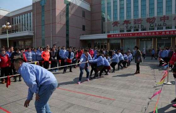 2017年3月7日下午,孚日集團(tuán)在員工俱樂(lè)部廣場(chǎng)舉行 “三八國(guó)際婦女節(jié)”慶;顒(dòng)。來(lái)自集團(tuán)部室和各公司共12支代表隊(duì)參加了拔河、跳繩和綁腿跑比賽。孚日集團(tuán)黨委副書(shū)記、工會(huì)主席綦宗忠,工會(huì)副主席、女職委主任李言芹出席活動(dòng),為“能頂大半邊天”的女員工們送上節(jié)日的祝福。