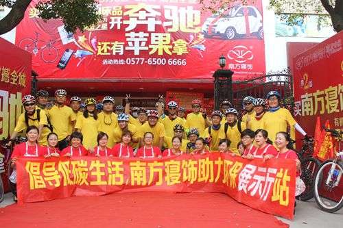 作為此次南方寢飾金秋狂歡節(jié)的系列活動(dòng)之一,“低碳生活,從我做起”活動(dòng)當(dāng)天,志愿者們從南方寢飾虹橋店出發(fā),途經(jīng)莘塍鎮(zhèn)、汀田鎮(zhèn)、塘下鎮(zhèn)、梧田鎮(zhèn)、溫州市區(qū)等,中途在安陽、羅陽、莘塍、雪山路等南方寢飾各專賣店休息,并合影留念,影像中不僅記錄下了這一具有紀(jì)念意義的經(jīng)典時(shí)刻,還記錄下了南方寢飾正在如火如荼舉行著的金秋狂歡節(jié)的火爆場景。在每一個(gè)休息的站點(diǎn),后勤人員都會(huì)熱情地遞上毛巾、送上茶水,這讓志愿者們倍感欣慰。