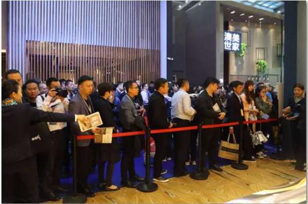 ?由于人流實在過多,為保證觀展體驗與顧客人身安全,富安娜·美家不得不在展廳門口拉起警戒線,以分批觀展的形式分流館內壓力