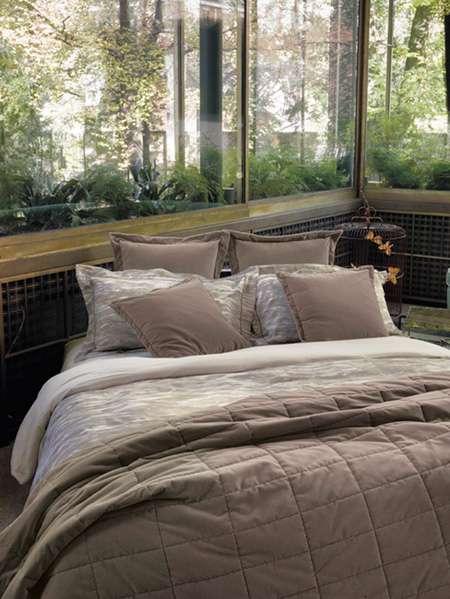 座落于紐約上東區(qū)與格林威治村內(nèi),一幢幢優(yōu)雅古典、涵納異文化卻不失現(xiàn)代化建筑特色的時(shí)尚公寓,觸動(dòng)了Frette新一季寢飾的設(shè)計(jì)概念。擷取遠(yuǎn)東文化下神秘的蓮花圖騰,透過(guò)幾何抽象,以幾近渾然天成的細(xì)致線條表現(xiàn)仿若工筆素描手繪于金埃及長(zhǎng)纖緞織棉上,翩然起舞;駐足遠(yuǎn)眺建筑群所構(gòu)成的天際線側(cè)影,F(xiàn)rette以一個(gè)不斷抬升的仰角線條呈現(xiàn)暮色中的紐約剪影,流動(dòng)而細(xì)膩的筆觸早已?入織染經(jīng)緯中。深邃灰、沙金、樺木白及風(fēng)暴藍(lán)等色系,映現(xiàn)出紐約的雅致與冬景之美。