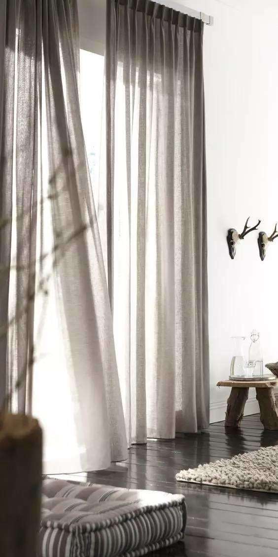 滌綸面料是最常見的窗簾材料,這種材料耐用且容易打理,平時用濕布清潔即可。
