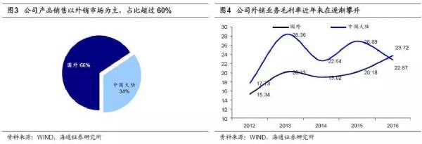 2016年,公司實現(xiàn)營業(yè)收入44億元,其中毛巾系列產(chǎn)品32億元、占比73%。公司產(chǎn)品銷售以外銷市場為主,2016年,外銷及內銷占比分別為66%及34%。