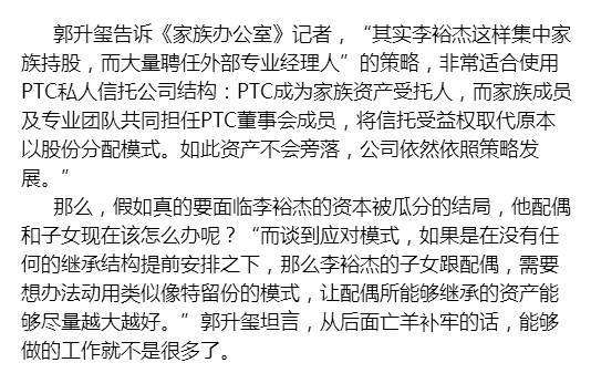 來自睿璞家族辦公室(Griffin Plutus Family Office)創(chuàng)始人郭升璽,從股權(quán)繼承的角度跟《家族辦公室》記者分析了水星家紡和李裕杰的家人可能要面臨的繼承問題。