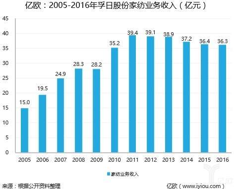 然而,從2011年開始,孚日的家紡業(yè)務(wù)收入開始逐年下降,雖然每年下降幅度不高,但相比于2011年,2016年的營收已經(jīng)減少了3億。尤其是2016年棉花等原材料出現(xiàn)近年來最大漲幅,多數(shù)家紡企業(yè)業(yè)績均有下降。
