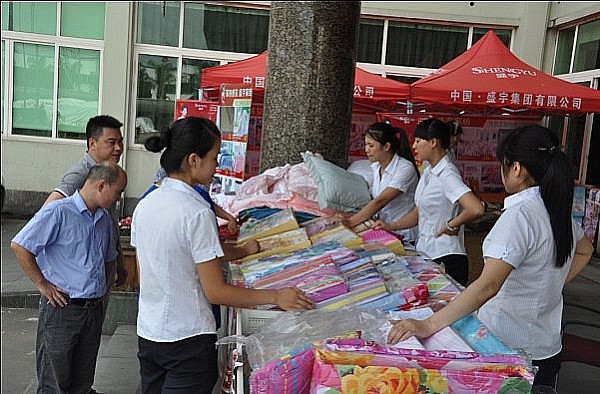 正當(dāng)盛宇集團(tuán)與各大企業(yè)積極開展活動(dòng)的同時(shí),溫州市兩新黨務(wù)工作者之家網(wǎng)站開辟了【會(huì)員單位產(chǎn)品供需服務(wù)平臺(tái)】專欄,動(dòng)員全市兩新組織會(huì)員單位及時(shí)在該平臺(tái)上發(fā)布供求信息,針對(duì)企業(yè)供求所需,互相配合開展產(chǎn)品展銷活動(dòng),這一舉措為盛宇集團(tuán)正在開展的特惠活動(dòng)注入了強(qiáng)大的生機(jī)和活力。全市第一個(gè)登錄該服務(wù)平臺(tái)的正泰集團(tuán),在平臺(tái)刊登供求信息后,經(jīng)正泰集團(tuán)黨委書記、副總裁林可夫全力支持,正泰集團(tuán)成了盛宇集團(tuán)利用【會(huì)員單位產(chǎn)品供需服務(wù)平臺(tái)】信息,進(jìn)入企業(yè)展銷家紡產(chǎn)品的“第一站”,8月25至26日,兩天的“內(nèi)部?jī)r(jià)”特惠活動(dòng),得到了正泰集團(tuán)員工的積極參與。盛宇集團(tuán)在“內(nèi)部?jī)r(jià)”的基礎(chǔ)上,又以《福利券》方式,給正泰集團(tuán)員工“二次優(yōu)惠”價(jià)格銷售盛宇家紡產(chǎn)品,引來(lái)了如潮的員工采購(gòu),有的員工還將此消息傳播給自己的朋友代為選購(gòu)。不少物美價(jià)廉的盛宇家紡產(chǎn)品僅一天時(shí)間就已脫銷。有的員工現(xiàn)場(chǎng)評(píng)價(jià):你們盛宇家紡的產(chǎn)品,東西真的比較好,價(jià)格也確實(shí)便宜,你們是真心來(lái)優(yōu)惠給我們的。有的員工說:我想要的那兩樣都賣完了,你們?cè)趺床欢嗄命c(diǎn)來(lái)賣?
