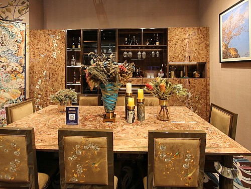 ??彭明:這次建博會(huì)總共帶來(lái)四個(gè)新的系列,分別是:幻變、寫意、源木和童趣。在整個(gè)展廳的概念館主要展示的就是最具有富安娜獨(dú)特風(fēng)格的幻變系列。幻變系列的產(chǎn)品更加偏重于圖案和色彩搭配,在四個(gè)系列中個(gè)性化和獨(dú)特性是最強(qiáng)的。第二個(gè)系列是寫意系列,在中式圖案元素上增加了一些西方的設(shè)計(jì)元素,使其更顯大氣。第三個(gè)是源木系列,以傳統(tǒng)的各種木紋作為設(shè)計(jì)基礎(chǔ),經(jīng)過(guò)藝術(shù)的調(diào)色和紋路再造,形成更為流暢的線條感,色彩上更偏素雅、清淡。最后的童趣系列,則是以卡通畫面作為主要的設(shè)計(jì)元素,形成個(gè)性鮮明的兒童風(fēng)格。三月深圳國(guó)際家具展的時(shí)候,富安娜美家第一次亮相,主要展現(xiàn)的是打破行業(yè)傳統(tǒng)的濃墨重彩風(fēng)格系列,而這次建博會(huì)參展的產(chǎn)品則具備了更多樣的風(fēng)格形式,充分體現(xiàn)富安娜的綜合設(shè)計(jì)能力,無(wú)論是錯(cuò)綜復(fù)雜還是簡(jiǎn)約素雅,都能游刃有余。