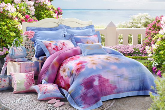 將自然引入家中,再沒有比床上鋪一套寫真花卉床品更惹人眼,在新一季床品中,羅萊選取了高貴優(yōu)雅的郁金香、有“愛情之花”美名的百子蓮、清雅婉約的“蝴蝶蘭”等多款靈動花朵作為設(shè)計元素,鮮美芬芳的寫真畫面與中國古詩詞的悠遠意境相通,例如早春主推款“DY3008芳菲”,飽滿明艷的紫色郁金香,在一片綠意中亭亭玉立,正是取自韓愈名篇中“草木知春不久歸,百般紅紫斗芳菲”的詩句,獨有的層次感。這季藍色也將成為14春夏的主流色彩,主推款“TS3009戀戀時光”再現(xiàn)的就是“日出江花紅勝火,春來江水綠如藍!钡拿谰常瑲赓|(zhì)高雅的海棠如含雨胭脂,在凈透的藍色水波中映出春光花影,如醉如夢。