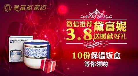 - 資訊春寒料峭的時節(jié),黛富妮家紡的微信平臺卻刮起了陣陣暖風,在不時襲來的寒流中,為生活增添一抹溫馨色彩。微信活動一直是黛富妮家紡官方微信與粉絲交流、互動的主要手段之一。通過一次次趣味性、創(chuàng)意性的微信活動,黛富妮把溫暖與關(guān)愛送到粉絲身邊,和大家一起分享生活中的點滴快樂。微信活動,成為雙方感情升溫最堅固的橋梁。2月26日正式開始的黛富妮新一輪微信活動,首次采取了“推薦...