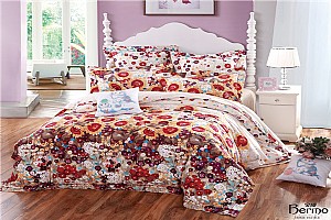 面料:采用秋冬保暖性極佳的磨毛印花面料,用時感覺柔柔暖暖,舒適貼身。花型:以向日葵為主元素,象征著蒸蒸日上的幸福生活。采用時尚大氣的卡其色為底色,異常生動。